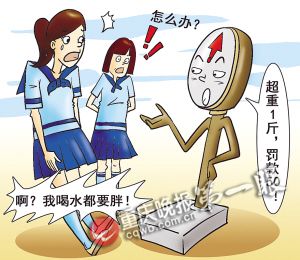 來信學(xué)生稱,“我們承受不了體重的罰款,因?yàn)橛袝r喝水都會長一斤!