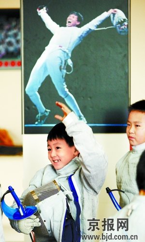 隨著中國(guó)運(yùn)動(dòng)員仲滿在北京奧運(yùn)會(huì)上成功摘金,服裝帥氣、動(dòng)作刺激、講究?jī)?yōu)雅的擊劍運(yùn)動(dòng),讓孩子們看得“心癢癢”。于是,奧運(yùn)會(huì)閉幕沒(méi)多久,東城體校便從天津擊劍隊(duì)請(qǐng)來(lái)專業(yè)教練,辦起了北京首個(gè)專門面向少年兒童的業(yè)余擊劍班。沒(méi)有大張旗鼓的宣傳,教練們?cè)趨^(qū)內(nèi)的多所小學(xué)里轉(zhuǎn)了一圈兒,200多名“小劍客”便主動(dòng)找上門來(lái)。