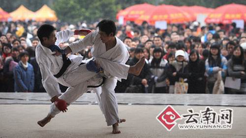 手握一根1.5米的木棍,身著藍(lán)色訓(xùn)練服的李萍表演起了“棍術(shù)”。這不是普通的武術(shù)表演,而是在云南省師范類畢業(yè)生專場(chǎng)招聘會(huì)上,大學(xué)生推銷自己的別樣方式。
