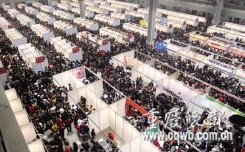 昨上午,春節(jié)后重慶市首場(chǎng)春季人才交流大會(huì),在南坪國(guó)際會(huì)展中心舉行。500多家企業(yè)提供的1.3萬(wàn)個(gè)崗位吸引了5萬(wàn)多名求職者前往,創(chuàng)下我市近年來(lái)招聘會(huì)求職人數(shù)新高。