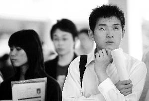 昨日的招聘會是金融營銷類專場,以往備受學生追捧的“金飯碗”昨日卻令不少求職者感到“當頭一棒”!霸缟8點我就過來了,已經投了4家,但都不是很滿意,銀行招聘的好像只有興業(yè)銀行一家。”在招聘會現(xiàn)場,記者遇到廣東金融學院金融專業(yè)大四學生小玉,他說自己的愿望就是到銀行工作,但因為金融危機的影響,銀行招聘正在“壓縮”,不僅崗位少了,條件也苛刻了許多,例如對年齡有了限制,“大學本科生年齡不超過24歲,碩士研究生年齡不超過28歲”。