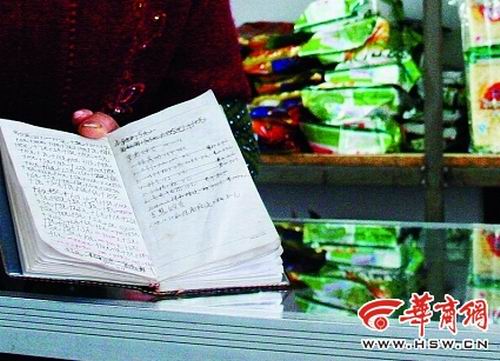 店主仵成翠向記者出示了給學生記賬的小本子,上面密密麻麻記錄了多名小學生賒賬的數額,但沒有具體名目!拔乙矝]有辦法,學生們都認識我,一下課到店里搶著買東西,主要是小吃和學習用品,賬都是他們自己記下的,有的學生還從我這里借現(xiàn)金!