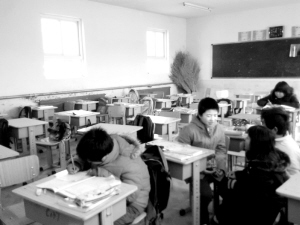 昨天上午,記者來到柴廠屯中學。此時學生們正在上課。透過一間教室的窗戶,記者看到,確有部分學生身著羽絨服或棉衣聽課。但許是個體體質存在差異,也有學生只穿了一件單薄的校服。這是一所初中學校,院內(nèi)3排平房分別是初一至初三年級的教室。