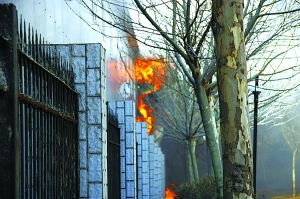 中午11時10分許,著火的小樓仍在不停冒煙。消防隊員在距離起火點約800米外的馬路上打開了一口自來水井,試圖從中取水。但是,這口井里并沒有水。其中一名消防隊員焦急地說:“快去最近的地兒再看看,靠近火源地方的水壓不夠!庇浾邚999急救人員處了解到,事發(fā)后,一名租住在附近簡易樓中的王姓外地青年,因吸入大量濃煙損傷到呼吸道,被急救人員送往附近醫(yī)院治療。火災沒有造成其他人員傷亡。截至記者發(fā)稿時,消防隊員們正在樓內(nèi)撲救,火勢還沒有被完全撲滅,火災原因目前尚不清楚。 張璋攝