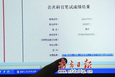 本報(bào)訊(記者/馬喜生張迪)2009年1月9日中央國家機(jī)關(guān)公務(wù)員考試成績公布,廣東考生易長安通過短信查詢成績時(shí),收到的回復(fù)卻是“您本次考試有違紀(jì)行為”,行政職業(yè)能力測(cè)試0分,申論51分。同一天,吉林某大學(xué)研究生王藝(化名)通過網(wǎng)上查分也被告知“ 嚴(yán)重違紀(jì)”,行政職業(yè)能力測(cè)試也為0分。
