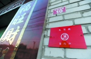村民楊大海(化名)瞅著自家門口的紅鐵牌發(fā)愁,鐵牌上印著“禮賢鎮(zhèn)簽約戶”。