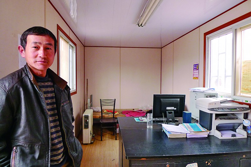 “你看到的只是外面,里面更好。”該工地一位姓馮的負責(zé)人自豪地說。果然如馮先生所言,房間內(nèi)部別有洞天。四周墻壁不但加裝了保溫層,還進行了裝飾。上有吊頂?shù)鯚,下鋪?fù)合木地板,窗戶上包了窗套,墻上安了插座和電箱,空氣開關(guān)的電閘有模有樣,桌上還放著電腦和打印機等辦公設(shè)備!霸趺礃?還不錯吧?在工地上住這樣的房子算是一種奢侈了。這些電源插座都不是擺設(shè),用暖氣和空調(diào)都沒問題。”馮先生介紹說。