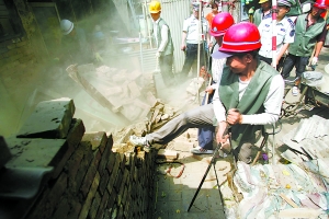上午10時(shí)許,幫拆違法建設(shè)的活動(dòng)正式開始。李廣民說(shuō),就是這67處今天計(jì)劃拆除的違法建設(shè),也有居民在昨天開始進(jìn)行自拆了,加上今天早晨進(jìn)行自拆的,占了總數(shù)的70%左右,對(duì)于那些拒不自拆或是無(wú)力自拆的居民,東鐵營(yíng)街道請(qǐng)了專業(yè)拆除公司,幫助他們拆除。