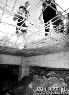 “我們是房屋的建筑方,知道房屋的結(jié)構(gòu),這樣改造沒有問題的!背啥际信d光華城市建設(shè)有限公司副總經(jīng)理譚小平解釋,被改造的房屋是還沒有售出的相連住房和商鋪,而他們作為開發(fā)商,正是此次改造的施工方。