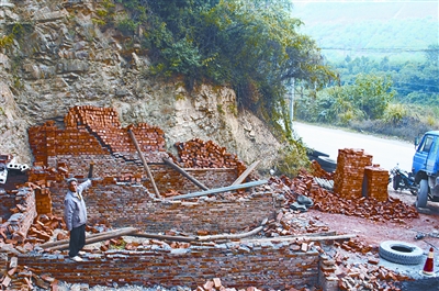 此后雖有干擾,唐家仍開挖地基。到2008年,8米多高的山腳終于被他“掏”出一塊數百平方米的空地。當年5月,新房墻體已建到1米高,紙坊城管所和村委會先后下通知說他建房違法,隨后紙坊街道辦事處將墻體強行拆除。