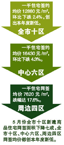 5月份網(wǎng)簽量跌三成價(jià)跌2.4% 周均價(jià)一個(gè)月跌去3273元/m2