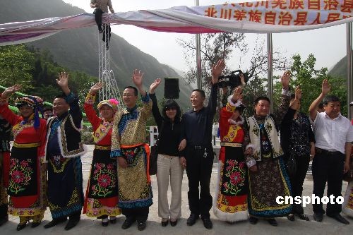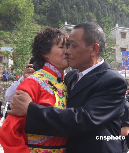 4月25日,四川省綿陽(yáng)市北川縣政府為20對(duì)震后重組家庭夫婦在吉娜羌寨廣場(chǎng)集體婚禮彩排。26日,20對(duì)震后重組家庭夫婦將在吉娜羌寨廣場(chǎng)集體婚禮,政府會(huì)為他們舉行壩壩喜宴,每對(duì)新人約請(qǐng)8名親朋好友參加。慶典之后,政府還將為新婚夫婦們送上價(jià)值10萬(wàn)元的厚禮--海南三亞5日游。這是北川自2003年成立羌族自治縣以來(lái)舉行的首場(chǎng)集體婚禮。這場(chǎng)婚禮是由北川羌族自治縣政府出資,專(zhuān)為北川震后重組家庭操辦的。此次活動(dòng)有利于災(zāi)區(qū)民眾看到人生的希望,走出地震陰影,開(kāi)始新的生活,“建起精神家園”,也寓意著“要建大家,先建小家”。中新社發(fā) 郭國(guó)權(quán) 攝