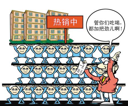 在北京市朝陽區(qū)東八里莊的一個居委會里,張大媽近日又開始忙起來了,同往年一樣,她又接受了東四環(huán)幾個待銷樓盤的邀約,組織一批老年人到幾個售樓中心“簽約”,一天管吃喝還凈掙50元。據(jù)介紹,他們有時還要到國貿(mào)春季房展會上演“訂房”,前臺簽單,后臺拿錢走人。(4月6日《人民日報》)
