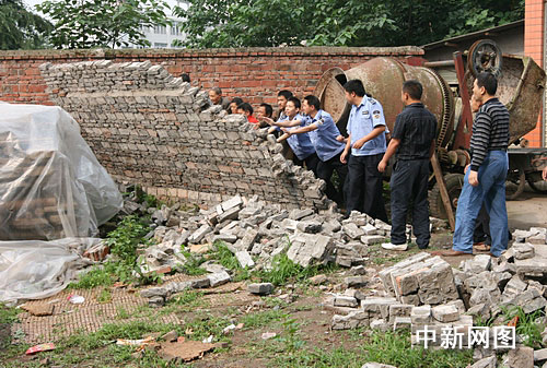 中新網(wǎng)廣安6月2日電(廖小兵 羅義明 張培成)2日上午9時許,隨著“轟”的一聲巨響,位于四川省廣安市廣安區(qū)北辰辦事處環(huán)城北路8號福泰居的一堵圍墻砃然倒塌,當?shù)赜嘘P(guān)部門聯(lián)合執(zhí)法強制拆除一非法圈地圍墻,群眾拍手稱快。