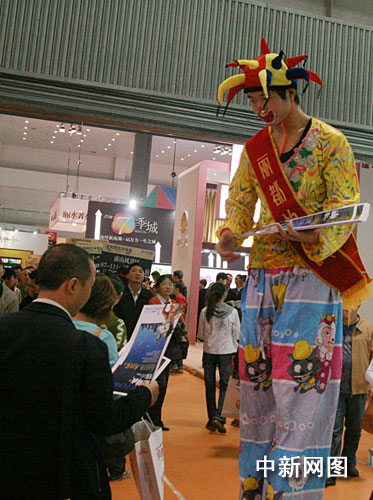 在房交會現(xiàn)場,房地產(chǎn)開發(fā)商們?yōu)槲搜矍,使盡渾身解數(shù)攬客。禮儀小姐舉著牌子,打著樓盤的廣告語,滿場游行;馬戲團小丑、美女模特站在展臺門口派發(fā)傳單;衣著印有樓盤信息T恤衫的促銷人員,四處游說和宣傳,為自己的展臺吸引人氣……