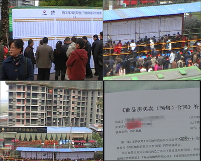 這是11月29日,位于成都市郊區(qū)的北湖印象樓盤,一個(gè)自稱是新農(nóng)村安置房、三年才能辦產(chǎn)權(quán)證、不能按揭的項(xiàng)目,同樣吸引了眾多購房者,推出180套房源,提前排過號(hào)的已有164號(hào)。