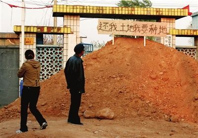 靳先生說,2004年,村里設(shè)置公共汽車站時,將他的土地占用。當(dāng)時,他拒絕領(lǐng)取占地補(bǔ)償款,提出找一塊地進(jìn)行置換,得到了當(dāng)時村委會的認(rèn)可。此事過后已快6年,村委會卻遲遲不兌現(xiàn)承諾。在多次協(xié)商無果后,他才想出堵門的方法解決問題。他說,14日晚,他花錢雇車運(yùn)來黃土,將土推到村委會正門進(jìn)行封堵!斑@樣做不對,但我實(shí)在是急了”,他說。