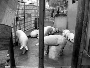 周先生是附近的一名住戶,據(jù)他介紹,這些豬是居民樓的房東養(yǎng)的,豬圈已存在數(shù)月之久。除了臭味難聞外,有時(shí)早上五六點(diǎn)豬發(fā)出的嚎叫聲嚴(yán)重影響住戶的正常休息。 周?chē)粼蛴嘘P(guān)部門(mén)投訴過(guò),但不知何故一直沒(méi)有人來(lái)處理。在豬圈一側(cè),記者看到一輛白色人貨車(chē),貨車(chē)車(chē)廂內(nèi)有豬糞。