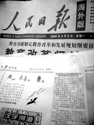 《人民日報(bào)》海外版廣告部的工作人員告訴記者,海外版面向全世界80多個國家發(fā)行,城管部門刊登《強(qiáng)制拆除決定書送達(dá)公告》是第一次。(記者 王彬)