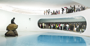 小美人魚銅像首次走出國門來到上海世博會(huì),騎著自行車游覽展館獨(dú)樹一幟……開幕至今,丹麥館給所有參觀者留下了深刻的印象。丹麥館就像一本打開的活生生的童話書,童話書里有丹麥的現(xiàn)在和將來。