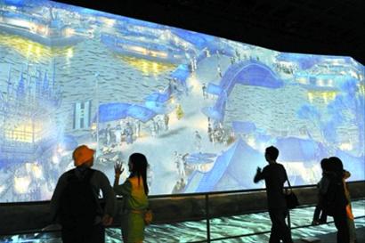 在其看來,這幅會“動”的清明上河圖,表現(xiàn)了宋代汴京的繁華景象,當(dāng)年的小康生活、和諧生活的理念也隨之得到表現(xiàn),每個人會走、會動、喝酒、聊天,這是利用現(xiàn)代技術(shù)把它做出來的。里面的水也是通過光效作用制成的,不是真正的水。