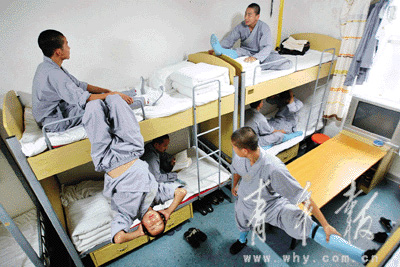 少林武僧團(tuán)生活素描衣:青布長衣,青布長褲,手腳繃帶,黃布鞋。食素食,牛奶和豆制品是最富營養(yǎng)的“補(bǔ)品”。住求職公寓,十人間,上下鋪。行園區(qū)、宿舍,兩點(diǎn)一線。 (記者 張春雷)