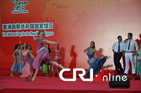 慶典活動(dòng)上,來自塞浦路斯著名的舞蹈團(tuán)隊(duì)“基雅斯達(dá)西”為大家?guī)砹私?jīng)典作品“海浪之聲”!昂@酥暋币詯叟c美之女神阿芙洛狄蒂為主角。這個(gè)神話人物也是塞浦路斯國家館的主題標(biāo)志。