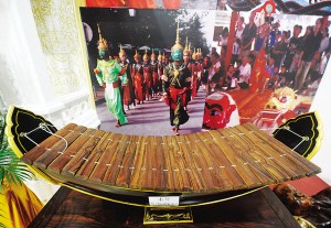 在香通寺模型周圍,還有形式多樣的展品,如當(dāng)?shù)靥厣你~鑼、木琴、名貴紅木手工藝品、現(xiàn)場(chǎng)制作的稻香咖啡等。