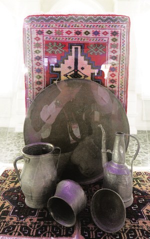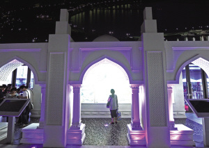 走進展館,仿佛置身于首都巴庫的老城區(qū)——內(nèi)城。阿塞拜疆是人類最古老的定居地之一,巴庫古城至今完整保留著修建于12世紀的汗王宮殿建筑,被稱為“內(nèi)城”,擁有迷宮般的狹窄巷道,景致如畫。