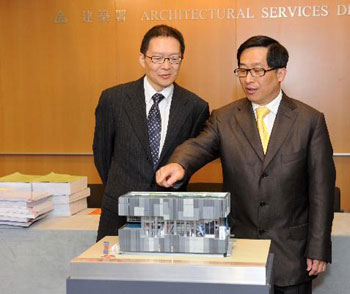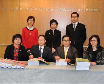 香港建筑署工程策劃總監(jiān)袁家達(dá)代表特區(qū)政府與金門建筑有限公司總裁何安誠(chéng)簽署合約。合約包括設(shè)計(jì)和建造香港館、內(nèi)部裝修、展覽裝置、園境設(shè)計(jì)、保養(yǎng)維修及在上海世博結(jié)束后的拆卸工程。