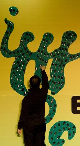 昨日下午,251把車鑰匙拼成的世博徽標(biāo)在正大廣場“完工”。意味著這些車主主動將私家車停開一天。