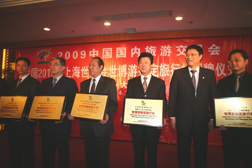 4月16日,國家旅游局和上海世博局在大連正式公布首批24家上海世博會(huì)境內(nèi)世博游指定旅行社名單,并向其授牌。