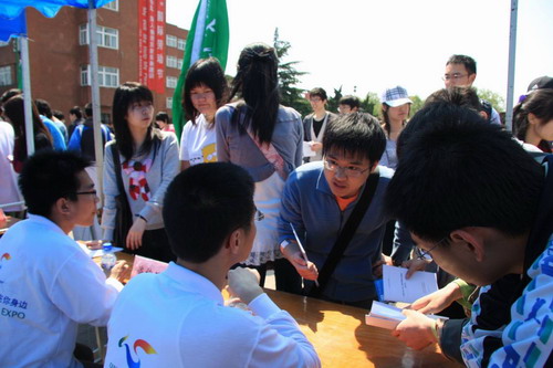 5月1日,中國(guó)2010年上海世博會(huì)倒計(jì)時(shí)一周年的日子,上海交通大學(xué)“中國(guó)2010年上海世博會(huì)”志愿者招募啟動(dòng)暨上海交通大學(xué)上海世博會(huì)工作站成立儀式,在交大閔行校區(qū)內(nèi)舉行,1000余名學(xué)生來(lái)到現(xiàn)場(chǎng)進(jìn)行咨詢(xún)。