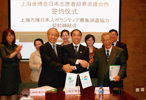 上海世博會志愿者招募工作已于5月1日正式啟動,面向全球招募七萬園區(qū)志愿者與十萬城市服務站點志愿者。目前,兩家機構已合作成立了“上海世博志愿者協(xié)力實行委員會”,專門負責日本志愿者的招募派遣工作,以及對日本志愿者進行上海世博會基本情況、中國國情、中文等方面的培訓。