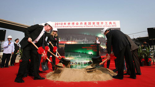 5月15日下午,上海世博會(huì)丹麥國家館在世博園區(qū)開工建設(shè),丹麥館以“夢想城市”命名,將邀請(qǐng)各國參觀者步入丹麥?zhǔn)降耐捠澜纾w驗(yàn)丹麥的城市生活。上海世博會(huì)事務(wù)協(xié)調(diào)局局長特別助理張?zhí)N杰、丹麥王國駐上?傤I(lǐng)事何麗蘭(Susanne Hyldelund)和丹麥館項(xiàng)目總監(jiān)韓少江(John Hansen)等出席動(dòng)工儀式。