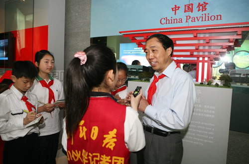 5月19日,上海世博局黨委副書記、紀(jì)委書記許偉國接受了上海市第六次少代會代表及《少年日報(bào)》小記者的采訪。小記者們就上海世博會學(xué)生優(yōu)惠門票、小朋友如何參與上海世博會等問題進(jìn)行了提問。