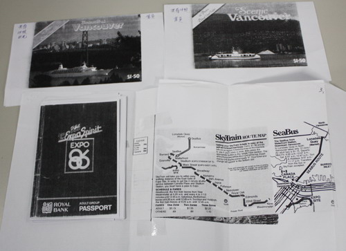 下面我分別談這兩件事的情況。當(dāng)我抵加拿大溫哥華,哥哥們 一定要我去參觀舉世矚目的1986年溫哥華世博會(EXPO),親友們很快為我購買了精致的入場券。因為每次去用車載我參觀,一參觀一整天(從上午10點到下午9點),我只去過兩次,去幾個國家地區(qū),每到一個地區(qū)、國家可蓋紀念章。這張入場券像一本護照,做得很精致,同時各個地區(qū)、國家有種種介紹的冊子。我要來不少冊子,后來在搬家中丟失了。這本“護照”留地方蓋當(dāng)日入場日期,并留了不少空白號蓋章用。我參觀了兩次(1986年5月26日及5月31日),我保存入場券上有蓋紀念章包括中國館、加拿大安大略省(法文地區(qū))、日本、馬來西亞、韓國、羅馬尼亞、加拿大、肯尼亞、澳大利亞、巴基斯坦等。我入場券號碼是0370014,首一頁是當(dāng)?shù)厥组L(籌備館負責(zé))歡迎詞,在第二頁上寫上自己的名字、地址及自己簽名,寫上三日護照(Three day passport)與皇家銀行(Royal Bank)合辦。并有一張1986年溫哥華EXPO導(dǎo)游圖,標出80個地區(qū)、國家所在。我還有保存兩本介紹溫哥華風(fēng)景小冊子,每一本冊子包括14個風(fēng)景區(qū),每本定價1.5元。