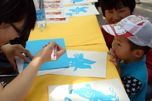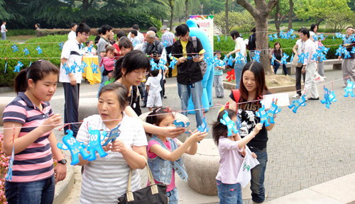 活動從早上9點(diǎn)開始,每位到場的小朋友均能獲得一個美麗的風(fēng)車,無數(shù)的風(fēng)車在晨風(fēng)中不停地轉(zhuǎn)動,轉(zhuǎn)出一道道亮麗繽紛的色彩。當(dāng)天的徐家匯公園被劃分為6個版塊,既有“海寶博士”猜謎語、世博知識500問活動,又有折紙面塑等民間藝術(shù)活動,引導(dǎo)孩子們剪海寶,折海寶和塑海寶。在親子廣場中,天真的孩童通過“親子劇場”這一品牌欄目,用兒童劇的形式,演繹對世博的向往。