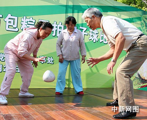 中新網(wǎng)上海6月4日電(徐云 鄭瑩瑩)“橡皮筋”、“彈皮弓”、“滾鐵環(huán)”等具有老上海情結(jié)的玩樂、健身項(xiàng)目已逐漸被歷史封存淡忘,而20多年前當(dāng)時(shí)在一些街道和國有企業(yè)曾風(fēng)靡一時(shí)的粽子球可能讓一些上了年紀(jì)的人仍記憶猶新。