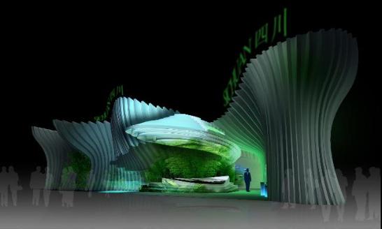 展館外立面是用多媒體構(gòu)成的川字造型立柱,立體展現(xiàn)飛躍的“太陽神鳥”標識,分別表現(xiàn)四川的文化與水、生態(tài)與水、城市與水。與大山大水展墻相呼應、連接二層的展示平臺,最大限度地合理利用頂面、地面與二層空間,強調(diào)氣勢與變化。整個展廳采用半通透式的展示結(jié)構(gòu),以體現(xiàn)四川人包容和開放的胸襟。
