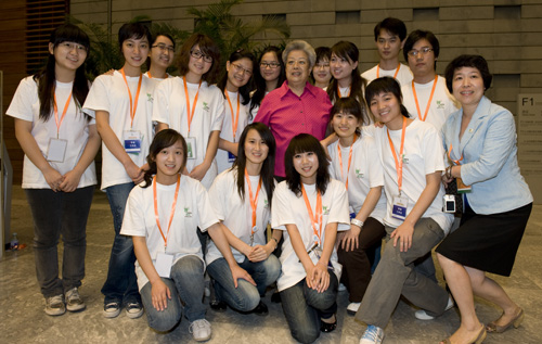 參觀結(jié)束時(shí),來自京滬兩地的“走進(jìn)世博會(huì)”展覽青年志愿者們自發(fā)等候在展廳出口處向“吳奶奶”問好。吳儀鼓勵(lì)大家要當(dāng)好世博會(huì)志愿者,并與他們合影留念。