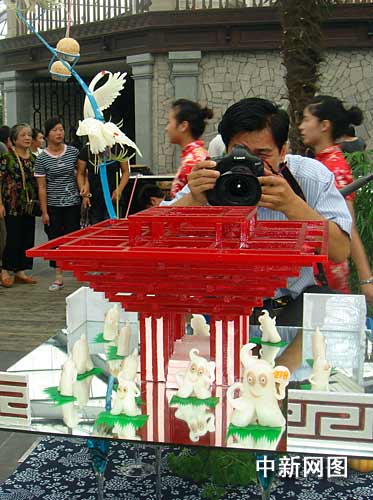 中新網(wǎng)上海7月25日電 (劉偉偉 萬軍)隨著2010年上海世博會的腳步漸漸走進,由上海市金山區(qū)婦聯(lián)和旅游局主辦,主題為“巧手編織創(chuàng)業(yè)路、姐妹心系世博情”的迎世博江南特色小吃制作大賽,今天在滬郊名鎮(zhèn)廊下鎮(zhèn)中華村農(nóng)村新天地展開決賽的爭奪。在決本次大賽中獲得優(yōu)勝的特色小吃,有望“香飄”上海世博會。