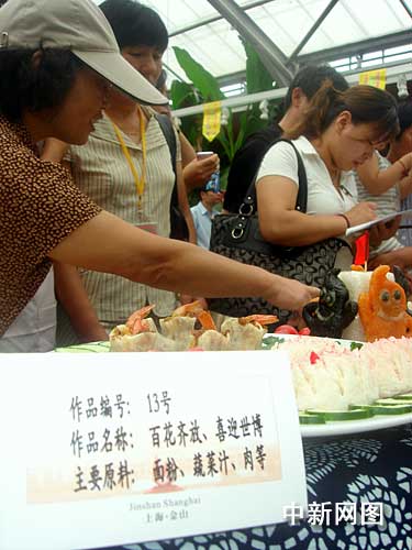 比賽現(xiàn)場,方糕、麻球、眉毛餃、菜塔餅……一道道色、香、味俱全的江南特色小吃在農(nóng)村新天地里擺開了擂臺。不少來此旅游觀光的游客,在品嘗了這些原汁原味的江南傳統(tǒng)小吃之后,還不禁躍躍欲試、一試身手,與金山的巾幗美食高手們一起互動競秀。此外,由美食巧匠們制作的一組演繹上海世博會主題的創(chuàng)意小吃作品,表達了金山姐妹喜迎世博的美好心情。