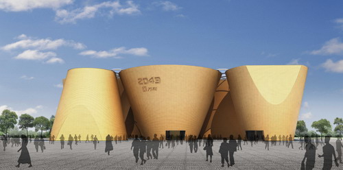 7月29日,猶如七座金燦燦的麥垛,落落大方地展示生命的健康與豐盛;天光與水色交相輝映,詮釋著自然平衡的和諧之美……這是上海世博會(huì)萬(wàn)科企業(yè)館建成后將呈現(xiàn)給世人的景象。29日,名為“2049”的上海世博會(huì)萬(wàn)科企業(yè)館發(fā)布展館建筑設(shè)計(jì)方案,同時(shí)在世博會(huì)浦西園區(qū)舉行奠基儀式。上海市政府副秘書長(zhǎng)、上海世博會(huì)事務(wù)協(xié)調(diào)局局長(zhǎng)洪浩,萬(wàn)科董事會(huì)主席王石等出席儀式。