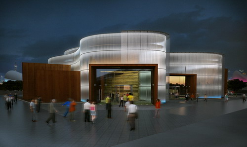 據(jù)智利館的全程服務(wù)商上海美術(shù)設(shè)計(jì)公司副總經(jīng)理王海利介紹,智利館的設(shè)計(jì)理念是一個(gè)呈波浪般起伏的水晶杯,又有大海中航船的意象。在造型復(fù)雜的鋼 結(jié)構(gòu)和玻璃墻之外,覆有特制的鋼絲網(wǎng),加上大面積的屋頂花園,可起到遮陽(yáng)節(jié)能的作用。