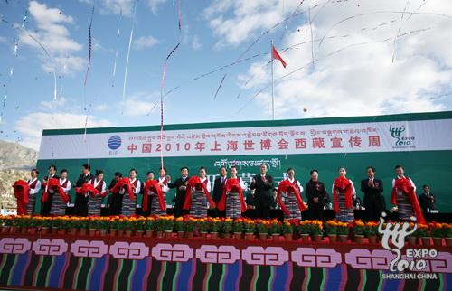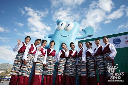 8月22日上午,金色陽光灑滿美麗的雪域高原,在日光城拉薩市中心,中國2010年上海世博會西藏宣傳周活動在布達拉宮廣場前啟動,2000多名西藏各界民眾歡聚在廣場前歡迎世博會吉祥物“海寶”落戶雪域高原。西藏自治區(qū)黨委書記張慶黎,西藏自治區(qū)黨委副書記、自治區(qū)主席向巴平措,中國貿(mào)促會會長、上海世博會組委會副主任委員萬季飛,上海市政協(xié)副主席、上海世博會執(zhí)委會副主任周漢民和西藏自治區(qū)領導郝鵬、吳英杰、崔玉英、秦宜智、宮蒲光等出席了今天的宣傳周啟動儀式。