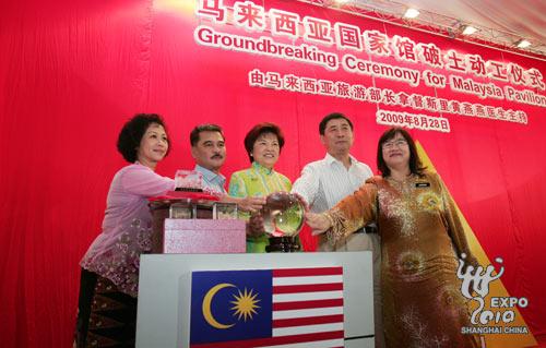 8月28日上午,上海世博會(huì)馬來(lái)西亞國(guó)家館公布設(shè)計(jì)方案及效果圖,同時(shí)在世博園區(qū)舉行開(kāi)工儀式。馬來(lái)西亞旅游部部長(zhǎng)黃燕燕,上海市政府副秘書(shū)長(zhǎng)、上海世博會(huì)事務(wù)協(xié)調(diào)局局長(zhǎng)洪浩等出席儀式。