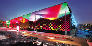 主題館的金屬色既不單調(diào),也不冷峻。整個(gè)建筑的明快線條和多變圖形,在金屬閃光中挾著一股現(xiàn)代暖風(fēng),迎面吹來。這個(gè)館堪稱世界級展館中的“巨無霸”:西廳2.5萬平方米,相當(dāng)于3個(gè)標(biāo)準(zhǔn)足球場;東廳兩層,各有1.7萬平方米;另外還有幾萬平方米的地下廳、中廳和下沉廣場。在世博會150年的歷史上,這是面積最大的一個(gè)展館。