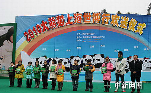 5日上午8點,“2010大熊貓世博行”歡送儀式在雅安碧峰峽基地舉行,儀式后10只世博熊貓于9:30左右啟程前往成都,將于下午13:30-14:00之間從成都雙流機場乘專機飛往上海。