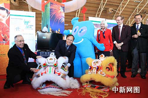 中新網(wǎng)多倫多3月7日電 (記者 賴海隆)3月6日,中國駐加拿大大使蘭立俊、加拿大聯(lián)邦參議員邁克•哈伯等嘉賓一起出席渥太華上海世博旅游圖片展開幕式,并為開幕舞獅點睛。